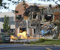 The subsequent explosion ripped away a significant part of the facade, scattering debris.