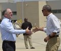 Obama was met at the Baton Rouge airport by a bipartisan group of officials, including Louisiana Gov. John Bel Edwards, a Democrat, and Lt. Gov. Billy Nungesser, a Republican. Republican Sens. Bill Cassidy and David Vitter also met the president on the tarmac before Obama headed to tour a neighborhood hit by the storms that killed at least 13 people and forced thousands from their homes.
