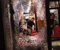 But the 100 or so people who remained grew increasingly agitated as they marched back toward downtown. Along the way, they knocked over planters, broke windows at a few shops and hotels, and scattered plastic chairs at an outdoor venue.