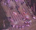 Television news helicopters showed first responders tending to at least one person who fell out of the UPS truck, moments after several shots were fired when the chase ended.