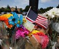 On Monday, a makeshift memorial made up of bouquets, flags, teddy bears and crosses bearing the names of the shooting's victims stood at one entrance to the municipal center. A small group of city employees were crying and hugging each other as they left flowers by one of the crosses. Volunteers with comfort dogs were on hand.
