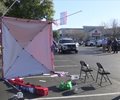 Afterward, he backed up, recorded the damaged tent and scattered signs on his cellphone and made obscene gestures before leaving, Alfieri said.