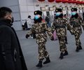 Chinese police officers wearing protective masks patrol a Beijing railway station. (Kevin Frayer/Getty Images)