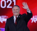 Pompeo took a couple of veiled swipes at Trump, saying "we can't become the left following celebrity leaders with their own brand of identity politics, those with fragile egos who refused to acknowledge reality," and noted the Trump administration added $8 trillion in new debt.