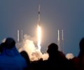 People watch as a SpaceX Falcon 9 rocket lifts off from launch pad 40 at Cape Canaveral Space Force Station. (Joe Raedle/Getty Images)