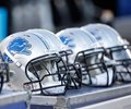 Lions players, as well as those of opposing team Atlanta Falcons, can be seen kneeling and linking arms during the anthem.