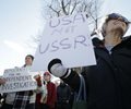 Protesters in Boston are demanding an investigation into allegations that President Donald Trump's campaign was in contact with the Russian government before the presidential election.