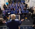 There's also the big threat of someone contracting the COVID-19 virus while attending the briefings. The White House staff spaces out chairs and recent briefings have been held outside in the Rose Garden where there's more space. Still, there are several dozen people in relative close proximity.