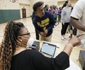 Activists with the voting rights organization Black Voters Matter drove to precincts in Jackson and other cities in a bus and a vans covered with images of civil rights leaders, including the late Fannie Lou Hamer. Carol Blackmon, the group’s Mississippi organizer, said the work was a nonpartisan effort to encourage people to vote.