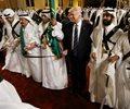 Swaying side to side, the president stood shoulder to shoulder with Saudis for the traditional dance, which includes drumming and singing.