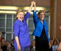 Clinton and Warren joined hands and waved to a cheering crowd in their first joint appearance. Warren told the crowd in Cincinnati, Ohio, "I'm here today because I'm with her," and said Democrats would "work our hearts out" to make Clinton president.