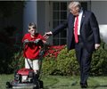 President Donald Trump high-fived Frank Giaccio, who lives in the Washington suburb of Falls Church. The White House says Frank wrote Trump to say he admires the president's business acumen and runs his own neighborhood lawn-care business.
