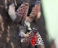 dead spotted lanternflies on a tree