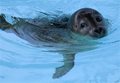 The seal pup is quick to dive after sardines tossed into her tank and fixes her large, dark eyes on aquarium workers the moment they step onto a special platform to feed her. Occasionally she swims to the platform's edge and attempts to haul herself from the water onto it. A special ramp has been installed to make it easier for her to get out. She makes the effort in a heartfelt plea for more fresh fish from the workers' shiny bucket.