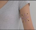 The inks change color depending on the chemistry of the sodium, glucose, pH and hydrogen ions present in the interstitial fluid and are weightless and can be used without electricity or charging.