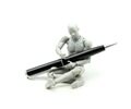 a man in a dark coat and white collar with indecipherable facial features that reside somewhere in the uncanny valley."