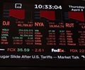 The Dow fell 10% from its record closing high in December, putting it on track to confirm a correction Friday, after China retaliated with fresh tariffs a day after the Trump administration announced sweeping levies on trade partners.