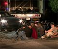 A handful of the occupants were treated at the scene for injuries and five were taken to a hospital for injuries that reportedly occurred when they were climbing out of the 18-wheeler.