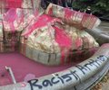 Local news outlets report that red paint was sprayed on the statue in Baltimore’s Patterson Park. The words “Racist Anthem” were sprayed on a sidewalk leading up to the statue Monday morning.