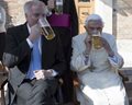 Photos by the Vatican newspaper L'Osservatore Romano of the celebration showed Benedict sipping a beer, reported The Associated Press. His brother, Monsignor Georg Ratzinger, also joined the party and enjoyed a beer.