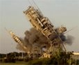 Presiding over a brief demolition ceremony, Brig. Gen. Wayne Monteith, commander of the Air Force's 45th Space Wing, cracked a few jokes before initiating the controlled explosion at 7 a.m.
