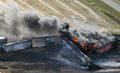 "Of the 26 derailed cars, two cars carrying petroleum distillate have spilled and that's the product that caught fire. There were four other dangerous goods cars; two of hydrochloric acid, two of caustic soda. They are reported to be intact," said CN spokesman Jim Feeny.