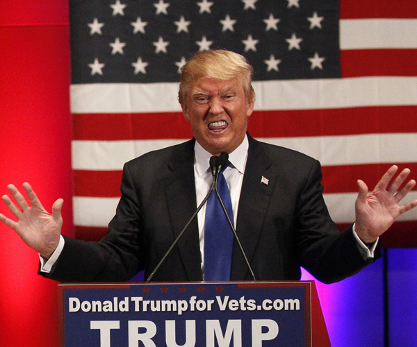 Republican U.S. presidential candidate Donald Trump waves goodbye at the end of his "Rally to Benefit Veterans" in Des Moines, Iowa, January 28, 2016. (Rick Wilking/Reuters)