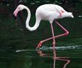 According to National Geographic, flamingos are known for their bright pink feathers, stilt-like legs, and S-shaped neck. They are able to "run" on water, thanks to their webbed feet, to gain speed before lifting up into the sky, the magazine said. They build nests that look like mounds of mud along waterways.