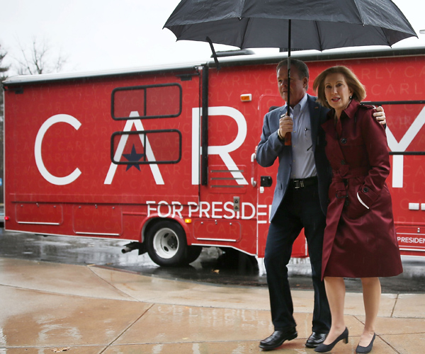 Republican presidential candidate Carly Fiorina and her husband Frank Fiorina arrive together for a Timberland Town Hall at the Timberland Global Headquarters on February 3, 2016 in Stratham, New Hampshire. (Joe Raedle/Getty Images)