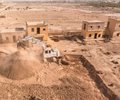 The de-mining project began earlier in March with work on the Ethiopian church's property, where barbed-wire fencing with yellow "DANGER MINES!" signs encircles crumbling, sand-hued buildings, one with a rusted cross. Bulldozers sifted through the mine-laden earth.