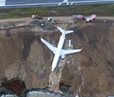 A jet slid on a Turkish runway and went over a muddy cliff on Sunday, with its nose only a few feet from the Black Sea. None of the 168 on board were injured.