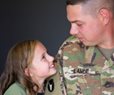 After each father handed Lange an American flag and a big bouquet of flowers, her father appeared on a large video screen with his Iowa National Guard unit with a routine of their own from overseas.