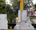 The monument had been the focus of an ownership dispute between the city and the museum before both sides on Monday announced an agreement that required the museum to remove it. The monument will be stored until a permanent site can be found.