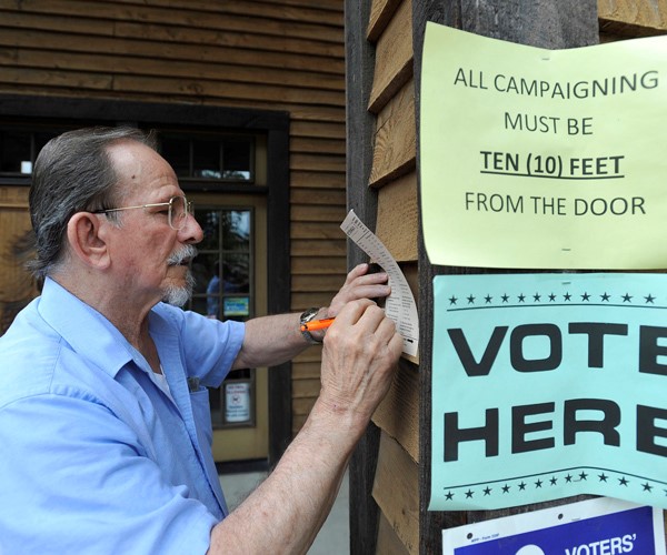 Voter Joe Cieslo fills out an exit poll for the AP, CNN, Fox, NBC, CBS, ABC after voting at the Westmont art center in Johnstown, Pa., Tuesday, April 26, 2016. (Todd Berkey/The Tribune-Democrat via AP)