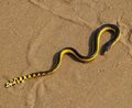 Los Angeles Times said the yellow bellied sea snake can be spotted by its bright yellow underside and a flat tail with black spots. The snake normally swims the tropical waters off the coasts of Africa, Asia, Australia, Central America and Mexico, and Baja California.