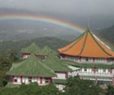 The phenomenon was accompanied by three other rainbows reaching over Taipei's mountains.