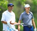He then told caddie Michael Greller: “Two perfect shots, Michael. You got me in the water on one and over the green on the other.”