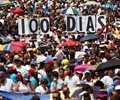 Venezuelan opposition supporters on Sunday marked 100 days of protests, galvanized by the release from jail of hardline leader Leopoldo Lopez, against a socialist government they blame for political repression and economic misery.