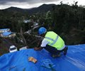 A contractor helps apply a FEMA tarp to a home damaged by Hurricane Maria on Dec. 20, 2017 in Morovis, Puerto Rico.  (Mario Tama/Getty Images)