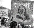Officers detained at least four people, who sat on the ground with their wrists bound behind them. As television cameras broadcast the scene live, a protester pointed at an officer and shouted: "Say her name!"