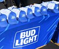 From afar, the skyward TV cameras depict a large swath of blue-and-silver packaging (the beer cases) covering the grounds right off the freeway.