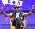 Basketball star Dennis Rodman (R) addresses the crowd at the 2018 Politicon in Los Angeles, California, on Oct. 20, 2018. (MARK RALSTON/AFP via Getty Images)