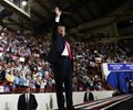 Trump during his speech said he wanted to "thank the fire marshals. They have a lot of people standing outside. We really maxed out. We broke the all-time record for this arena. We broke the all-time record."