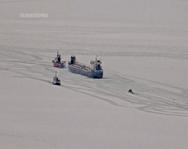 A U.S. Coast Guard icebreaking ship had been working since Thursday to help the Manitoulin, and on Saturday, officials said a second ship arrived to help free the freighter. The Canadian Coast Guard also had a ship assisting with the effort.