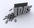 an illustration of stick figures falling off the word jobs