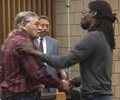 A white Donald Trump supporter Wednesday shook hands and hugged a black protester he punched at a rally last March, urging "you and me, we got to heal our country," WRAL reported.
