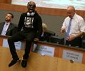 Several minutes later Clark came back outside and was quickly carried away as he moved to approach reporters again.