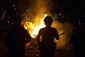 Bottles were hurled at police as they attempted to disperse crowds and help firefighters put out bonfires.