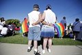 Ann Skinner, left, and her wife Sheila Belka wait for the beginning of the Utah Pride Parade in Salt Lake City, Utah.