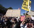 “Vote for your daughter's future,” read one message in the sea of signs carried by demonstrators, who marched through downtown Washington to the Supreme Court. “Fight like a girl,” said another.